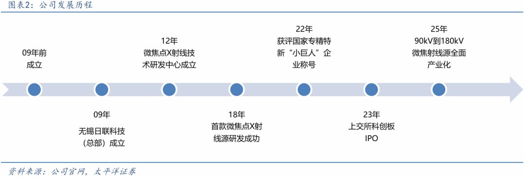 国内工业X射线检测设备的龙头企业,核心部件 整机装备 AI影像软件全产业链生产。公司是国家级专精特新“小巨人”企业,于09年前成立,于23年登陆科创板块。公司专注于微焦点和大功率X射线智能检测装备的研发、生产与销售,是国内少数实现从核心部件X射线源到整机装备、影像软件自主研发并形成规模化全产业链生产的企业。公司产品涵盖了90kV到180kV以及更高功率的微焦点射线源及系列化X射线检测设备,应用覆盖集成电路及电子制造、新能源电池、铸件焊件及材料检测等领域,打破国外厂商对微焦点X射线源的垄断。