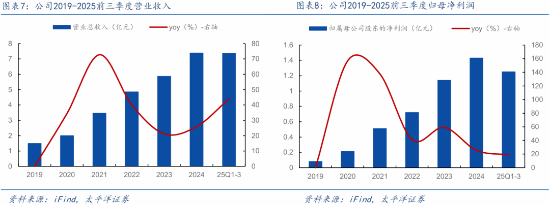 盈利预测与投资建议:预计2025-2027 年营业总收入分别为10.71、16.41、23.82亿元,同比增速分别为44.88%、53.15%、45.15%;归母净利润分别为1.74、3.16、4.54亿元,同比增速分别为21.09%、81.98%、43.74%,对应25-27年PE分别为61X、33X、23X,给予“买入”评级。