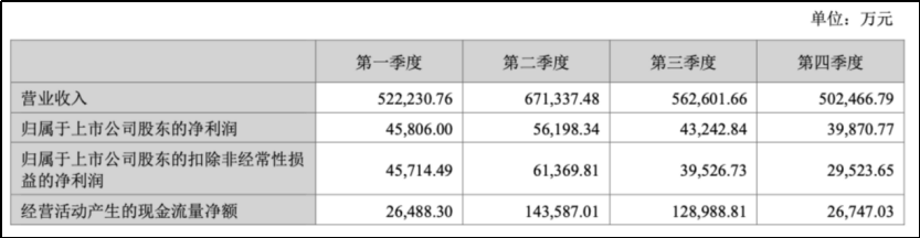 横店东磁分季度主要财务指标(来源:公司财报)