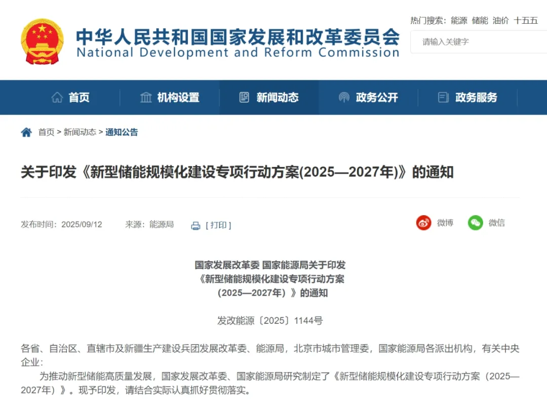 今年9月,国家发展改革委、国家能源局印发《新型储能规模化建设专项行动方案(2025—2027年)》的通知,涉及总体目标、应用场景、利用水平、创新融合、标准体系、市场机制等方面。这是新型储能领域的又一重磅政策,也为该行业未来两年的发展定下基调和发展目标。