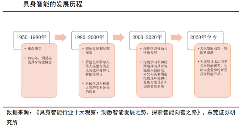 随着机器人学、神经科学和控制理论等学科的交叉融合,具身智能进入技术积累阶段,这一阶段的核心特征是硬件技术逐步成熟,传感器与执行器性能大幅提升,为后续具身智能的发展奠定了基础。