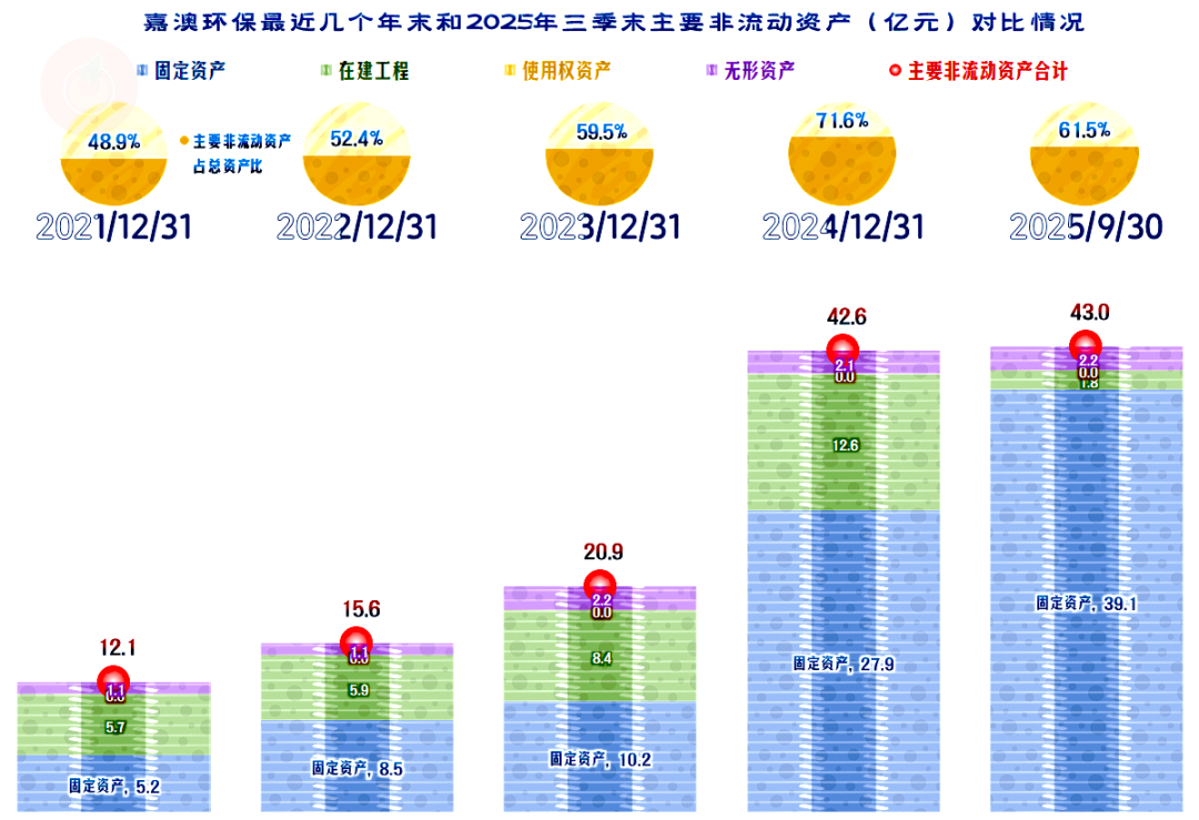 前几年的经营性长期资产和固定资产都在增长,2024年的增长明显加速。2025年三季度末的主要变化是从在建工程转入固定资产,经营性长期资产总量上的变化并不大。