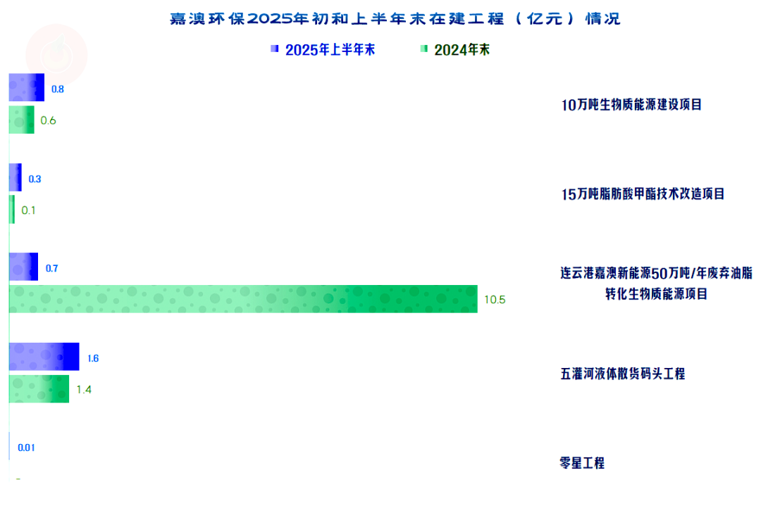 “连云港嘉澳新能源50万吨/年废弃油脂转化生物质能源项目”预算为27.5亿元,上半年末就已经部分完工,大部分的装置都可以投入生产并发挥作用。这当然是2025年三季度营收增长的产能基础。