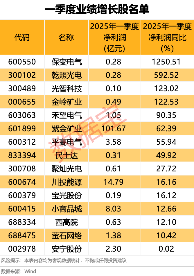 截至目前,A股中有24家上市公司发布了2025年第一季度业绩报告,15家公司一季度盈利且净利润同比呈现增长。