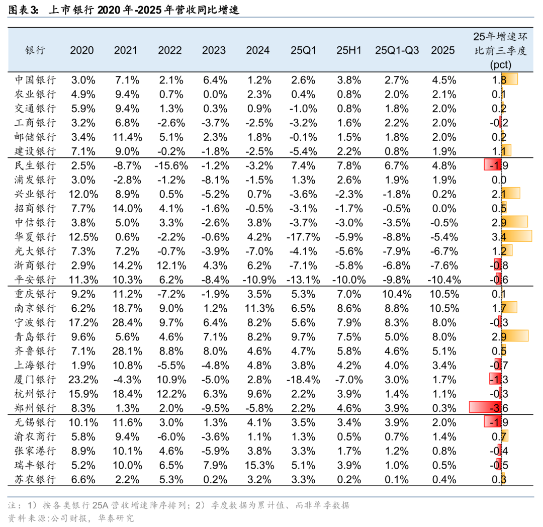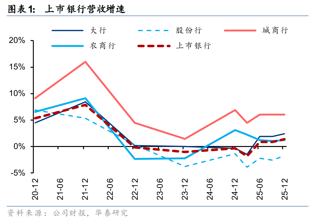 25年上市银行业绩增速改善,营收、归母净利润分别同比 1.4%、 1.6%,增速分别较9M25 0.6pct、 0.3pct,主要得益于息差边际企稳 非息提振。重点关注:1)25Q4样本上市银行净息差边际企稳,带动利息净收入增速提升;2)中收修复增长,非息增速分化;3)上市银行规模增长边际有所提速,存款定期化趋势延续;4)账面不良改善,但零售与房地产风险有所波动。个股关注:1)兼具红利与成长属性的优质银行。2)红利价值突出的银行。