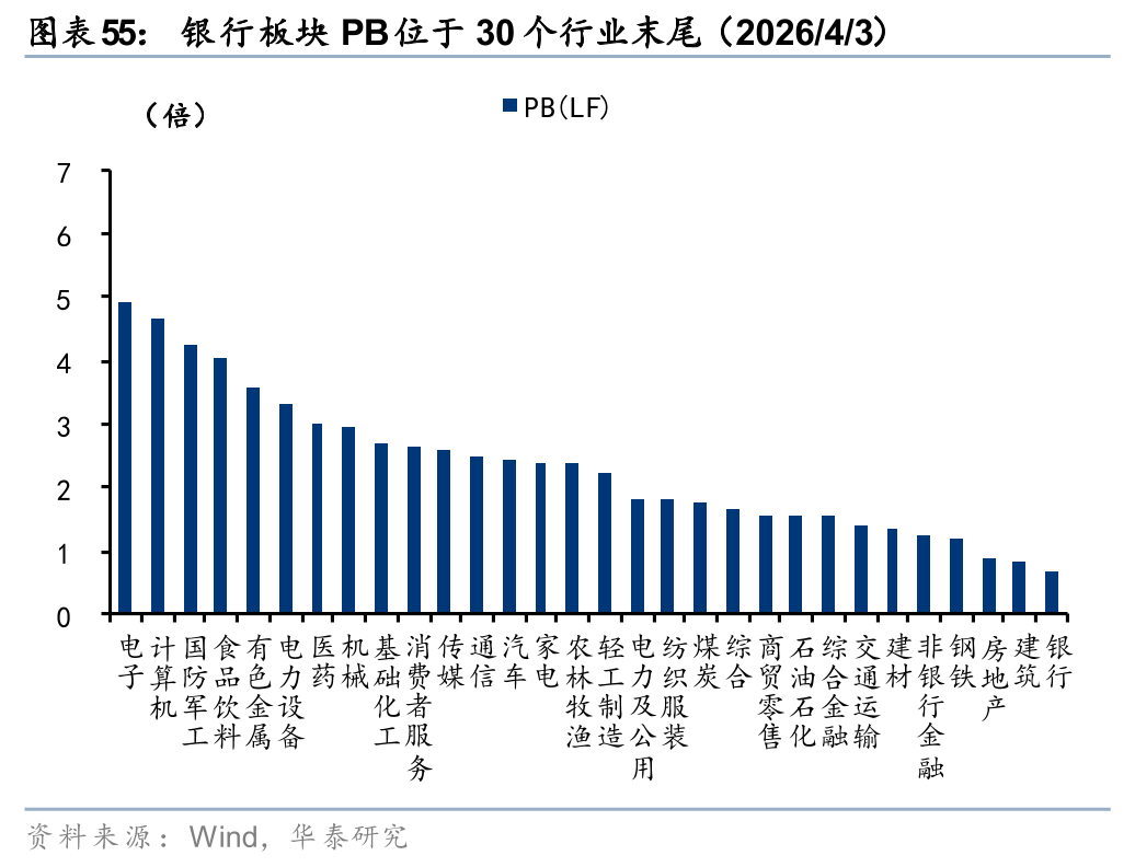 我们预计26年上市银行业绩将逐步筑底回稳。监管呵护银行盈利空间意图明确,息差已观察到企稳迹象,随资产端降幅收窄 负债端持续改善,26年息差企稳拐点可期,有望带动利息净收入增速回暖。此外,随资本市场活跃度提升,居民财富管理需求逐步释放,有望带动代理、托管等中收业务修复。今年债市波动环境中,部分银行通过兑现金融资产浮盈部分平滑收益波动,但由于前期已集中释放部分浮盈,后续可操作空间预计收窄,其他非息收入或为26年业绩的主要扰动项。银行板块PB(lf)估值为0.67倍(2026/4/3),处于2010年以来23.2%分位,处于较低水平,具备配置性价比。