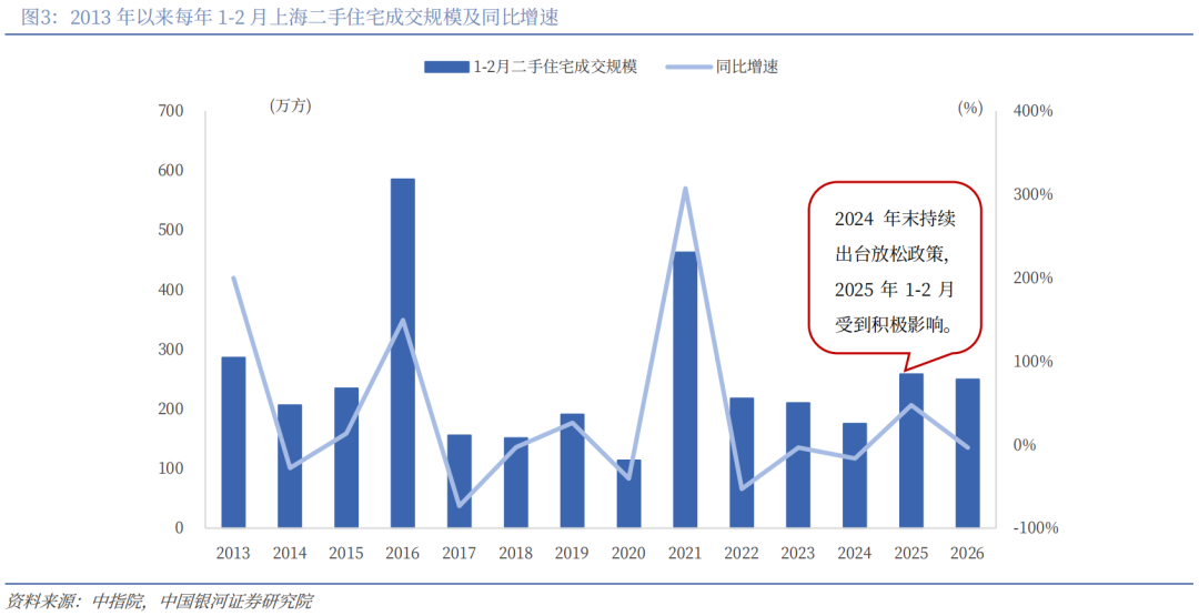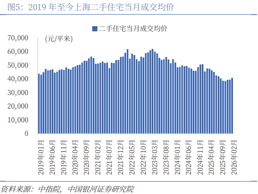 从成交规模看,2026年1-2月,上海二手住宅成交249.8万方,占上海住宅总成交面积的69.62%,从绝对规模看,二手住宅成交规模已超过2024年同期水平,并且较2025年同期仅降低3.37%。考虑到2026年2月末出台“沪七条”放松政策,对2月楼市影响有限,我们认为3月表现值得期待。