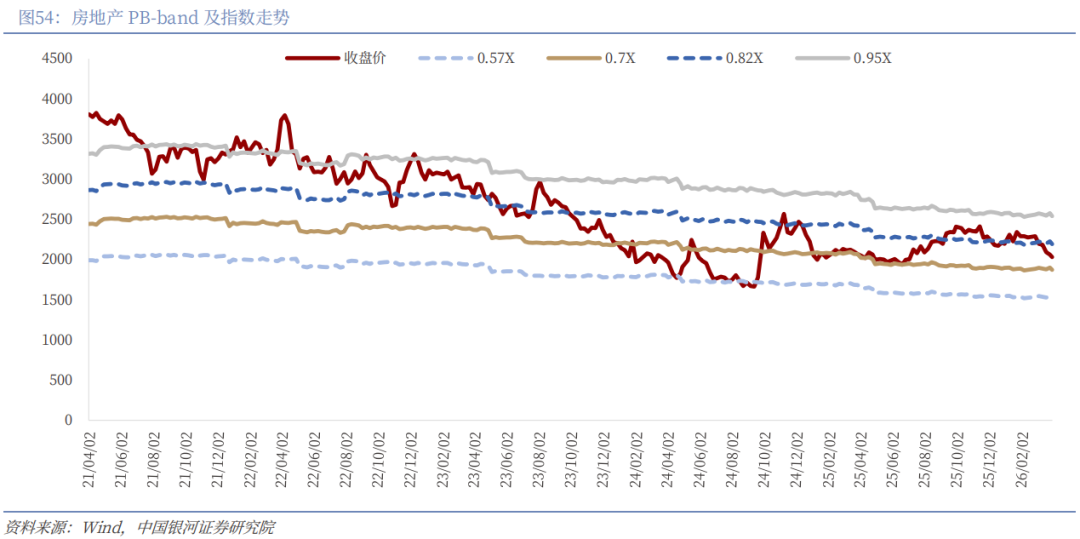从PB估值看,2025年10月以来,行业整体进入PB相对波动的阶段。政策端,2026年2月上海出台收购二手房和“沪七条”等楼市政策。在政策的作用下,行业基本面有望有所修复。随着行业稳定发展态势逐渐巩固,行业配置价值逐渐凸显。