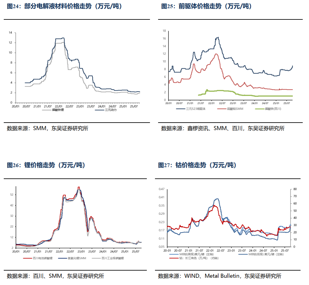 投资建议:26年行业需求增速预期20-25%,当前盈利拐点临近,底价订单价格开始恢复,强推板块。首推格局和盈利稳定龙头电池(宁德时代、比亚迪、亿纬锂能)、结构件(科达利);并看好具备盈利弹性的材料龙头,首推(湖南裕能、尚太科技、天赐材料、富临精工),其次看好(璞泰来、新宙邦、容百科技、华友钴业、中伟股份、恩捷股份、星源材质、德方纳米等),关注(龙蟠科技)等;同时碳酸锂价格进入底部区间,看好具备优质资源龙头,推荐(中矿资源、永兴材料、赣锋锂业)等