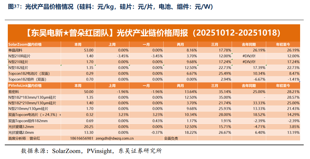 展望四季度,随着十月起需求开始回落,部分企业反映订单不及预期。预计下半月在国内整体需求逐步收窄的情况下,组件价格将大致维持稳定。至 11-12 月,随着需求进一步减弱,市场关注焦点将转向明年一季度订单的签订与生产安排,部分企业可能提前规划排产以衔接新年度需求。
