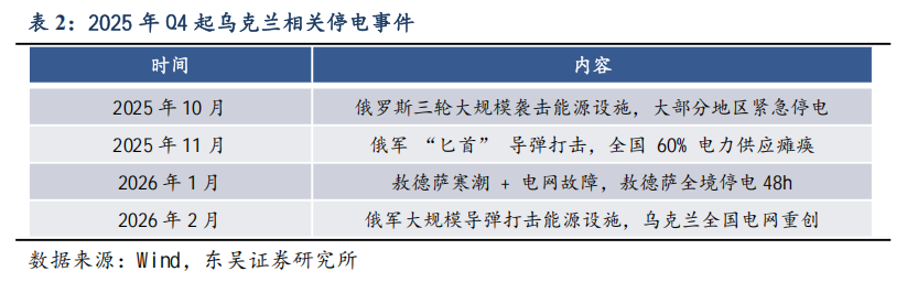 乌克兰:政策 生存刚需驱动户储高增。新一轮袭击下乌克兰发电装置毁损严重,电力缺口达10GW。根据IEA数据,2022年到2025年供暖季乌克兰发电装置一直处于毁损与重建中,截至2025年供暖季之前,乌克兰总发电装置约15GW ,但2025年Q4以来俄国持续打击乌克兰能源设施,乌克兰停电事件频发,多地日均停电超16h,发电装置估计已不足10GW,相较战前乌克兰全国估计约80%发电设施已被摧毁,乌克兰电力缺口高达10GW。
