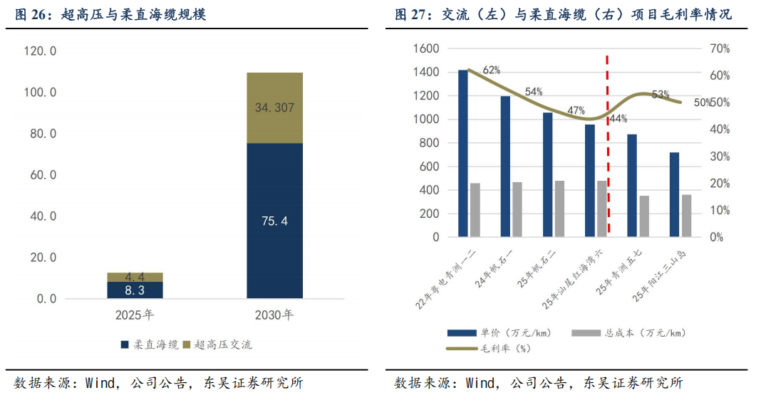 3.2.2. 海缆:电压等级提升,超高压 柔直毛利率45-55%