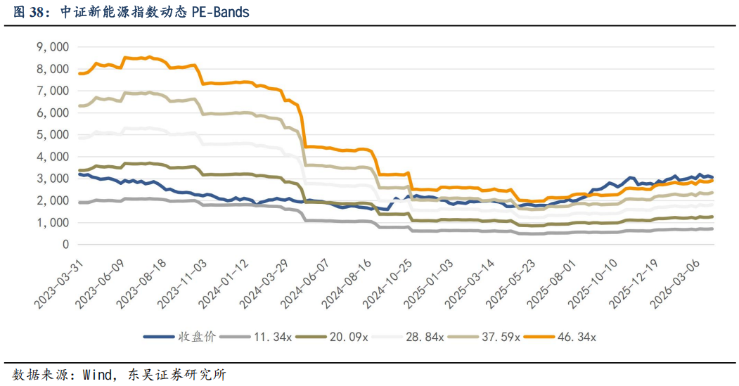 光伏:供给侧拐点已至,太空光伏拓宽需求。政策引导“反内卷”加速落后产能出清,各环节全面停止扩张。2026年Q1组件价格已现反弹,产业链盈利承压触底后逐步修复。“十五五”期间装机目标明确,商业航天低轨卫星加速部署使太空光伏具备千亿级市场弹性空间,太空算力更有望带来数万亿级市场规模。
