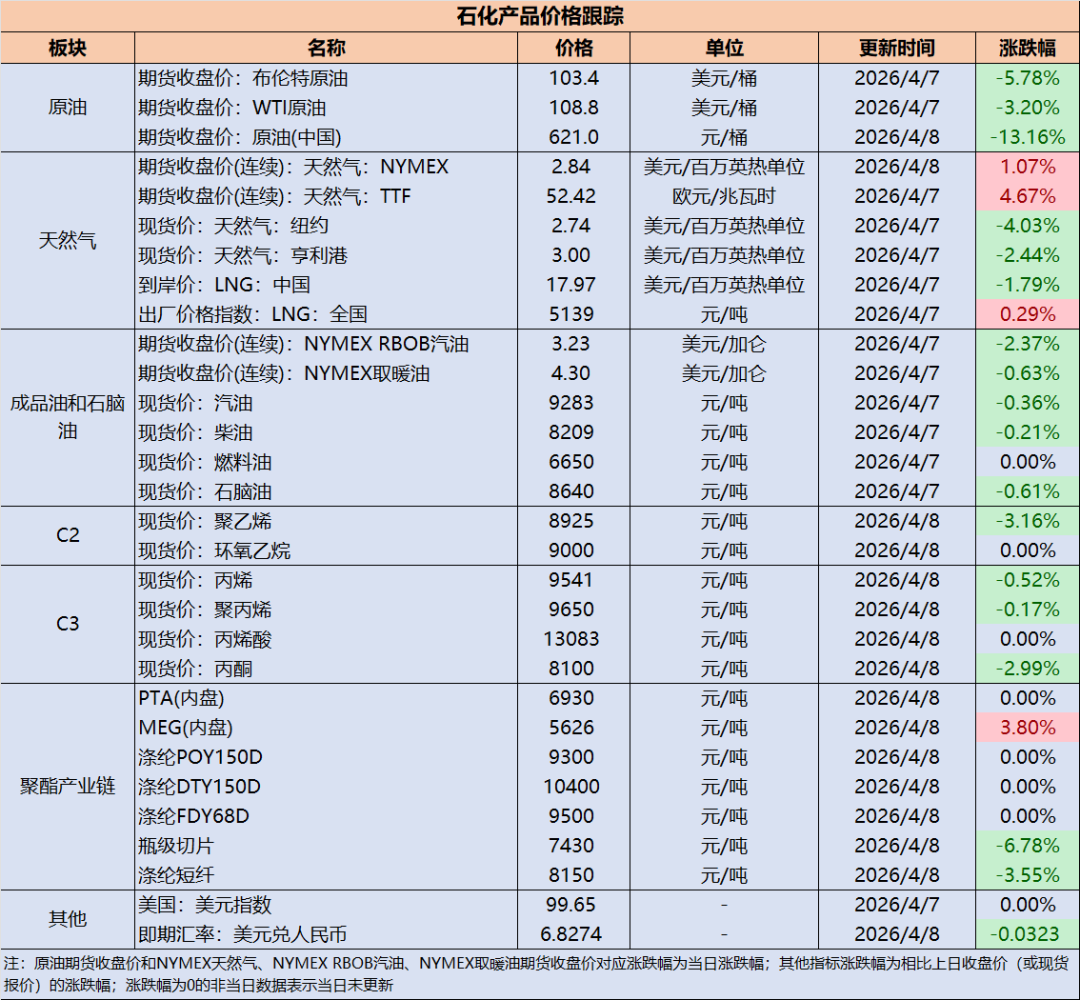 石化产品价格跟踪