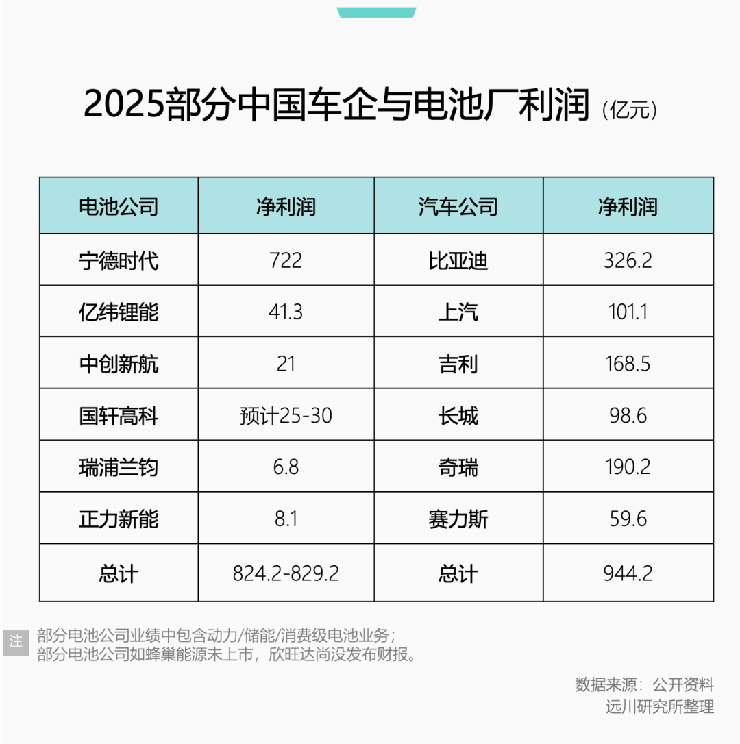 2025年,电池公司迎来大丰收,宁德时代全年净利润722亿人民币,是比亚迪的两倍、吉利的四倍,平均每天净赚两个小目标。
