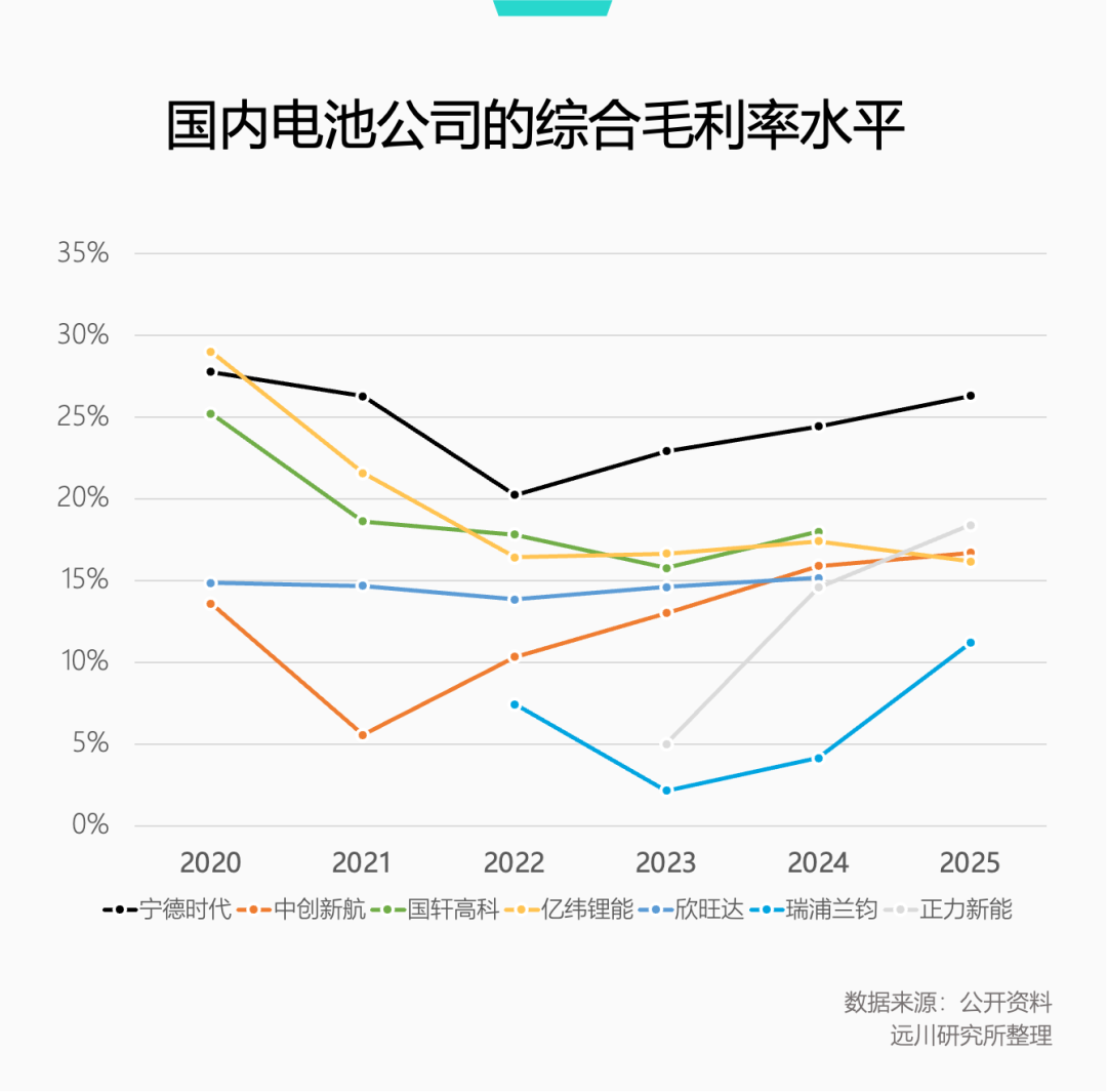 过去几年,宁德时代的毛利率从未降到过20%以下