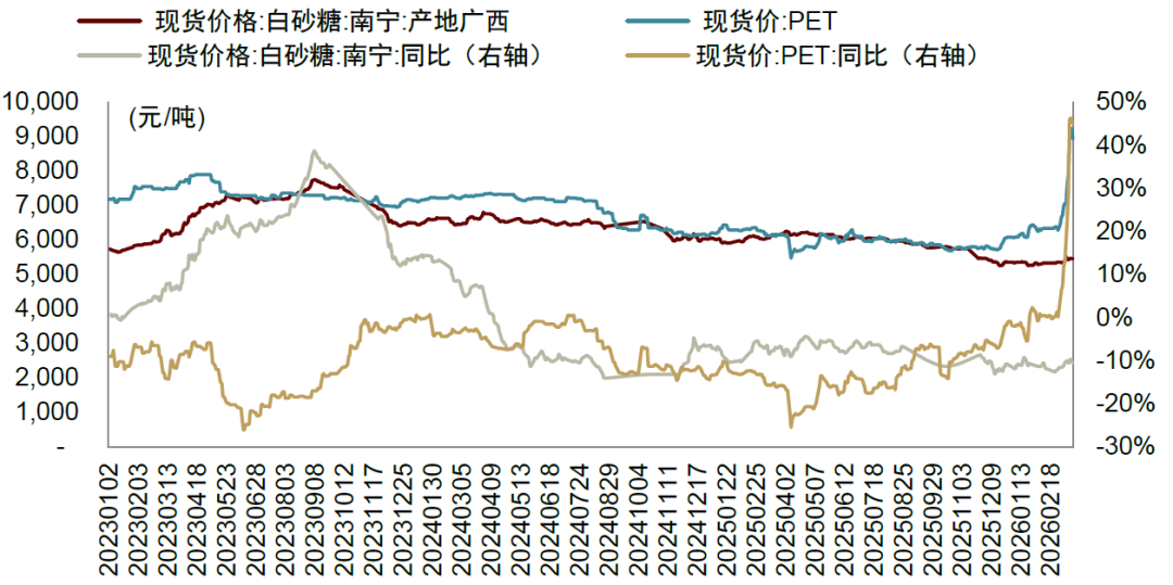 2026年展望:PET价格上涨较多,白砂糖相对稳定
