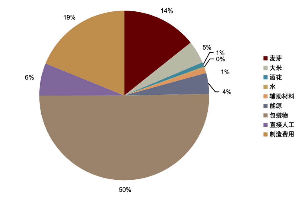 定量测算:从成本结构来看,以青岛啤酒2024年年报为例,麦芽占成本比重为12%,包装材料占比为51%。