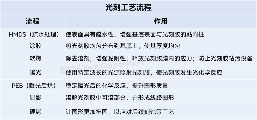 在实际制造中,光刻胶需要配合一整套光刻工艺流程,才能完成图形转移。