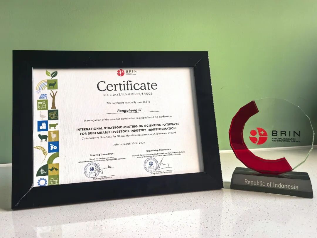 (图:印尼国家研究与创新署特颁发纪念证书和徽章)