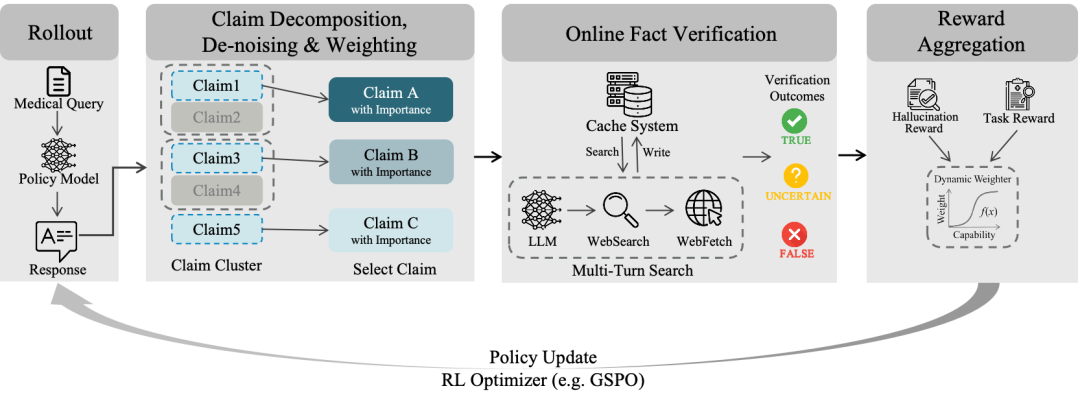 简单来说,就是在模型训练的每一次奖惩中,都加入对医学事实的严苛校验。