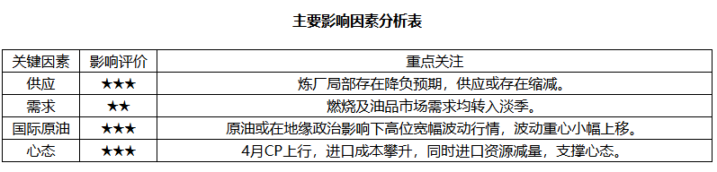 3月国内LPG市场受中东地缘局势主导,价格整体大幅走高,民用气、醚后C4、丙烷均呈现宽幅震荡上行态势,价格重心显著上移。下游行业表现分化,烷基化、异丁烷脱氢装置亏损收窄甚至扭亏为盈,而PDH装置利润则持续恶化。展望4月,原油或维持高位波动,国内LPG供应偏紧预期仍存,但叠加需求转入淡季,以及中东局势后期存在缓和预期,市场预期呈现先涨后跌走势。