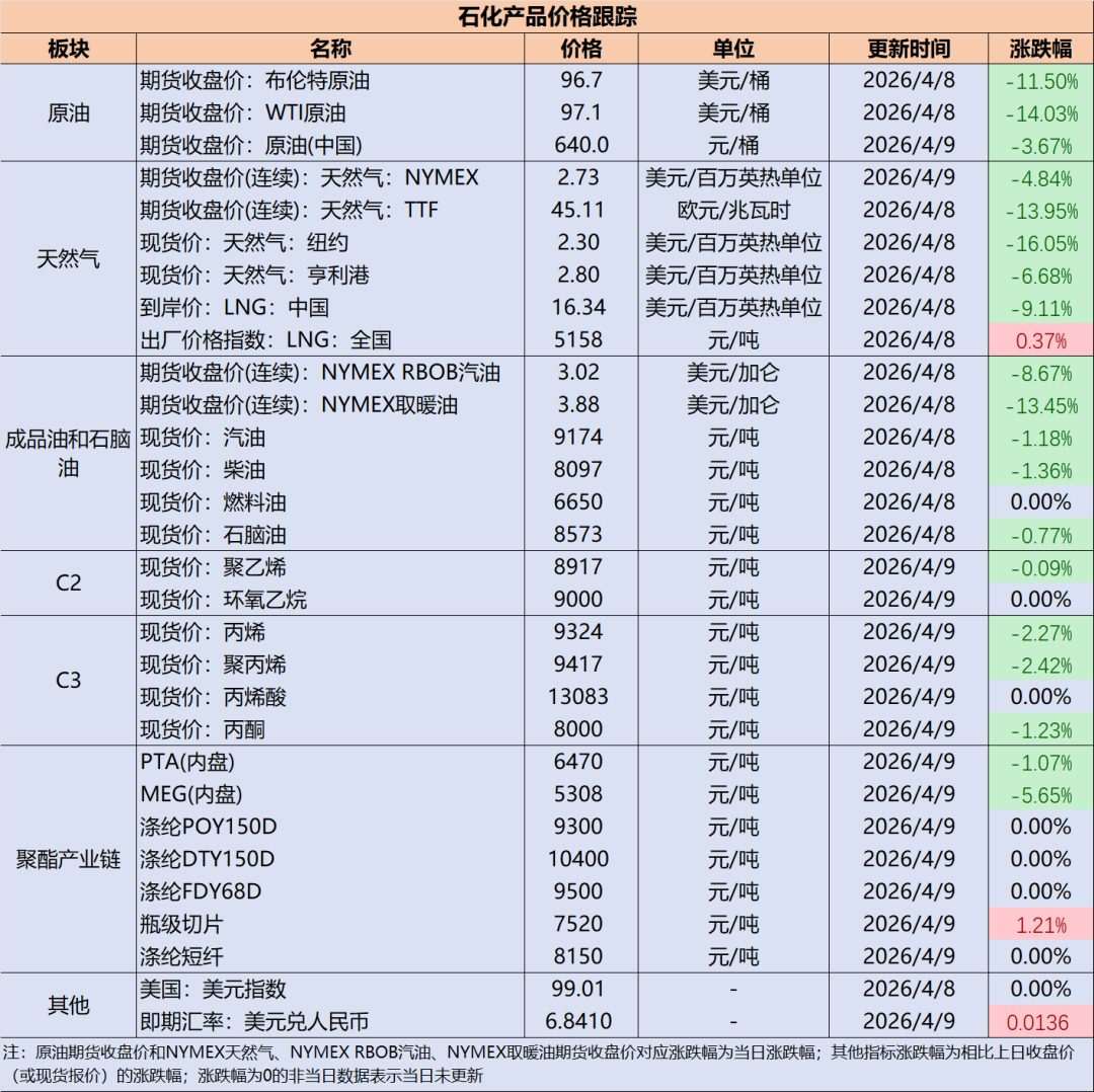 石化产品价格跟踪