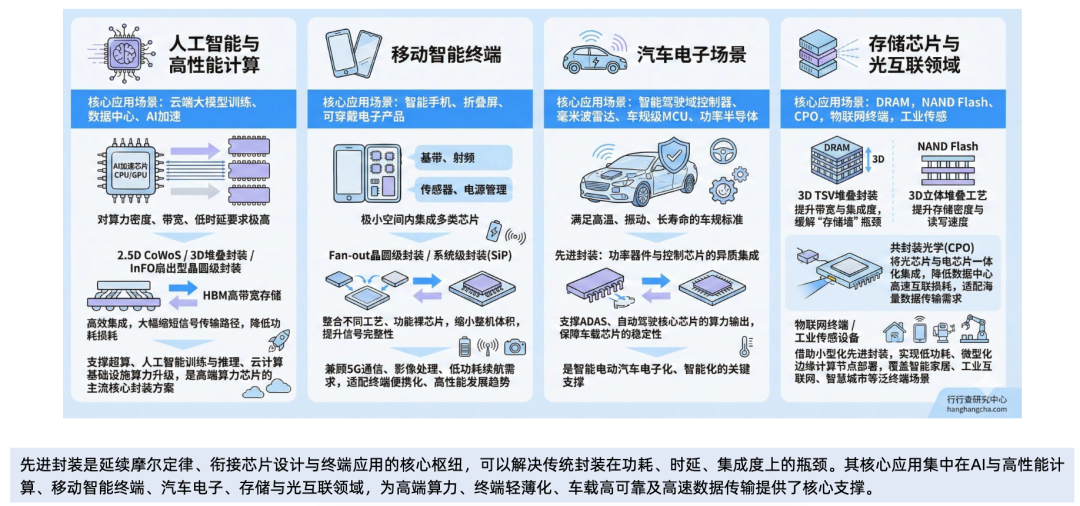 先进封装核心应用集中在高算力、高集成、高可靠性核心领域: