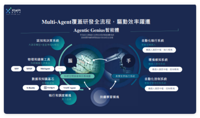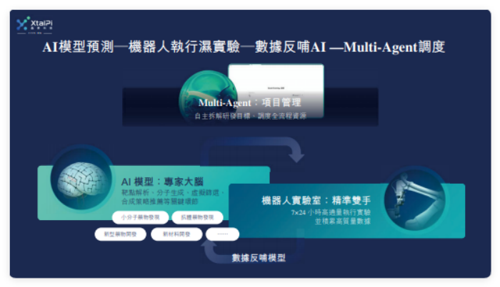 2025年持续推动AI、机器人与Multi-Agent系统的深度融合,构建了行业独有的“AI模型预测-机器人执行湿实验-数据反哺AI模型训练-多智能体(Multi Agent)调度”闭环。AI模型覆盖靶点解析、分子生成、虚拟筛选和实验策略等核心环节;机器人实验室可7x24小时高通量执行实验;Multi-Agent系统负责任务拆解与资源调度,推动研发高效运行。