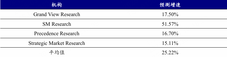 表:主要海外机构预测的全球脑机接口产业未来五年增速(单位:%)