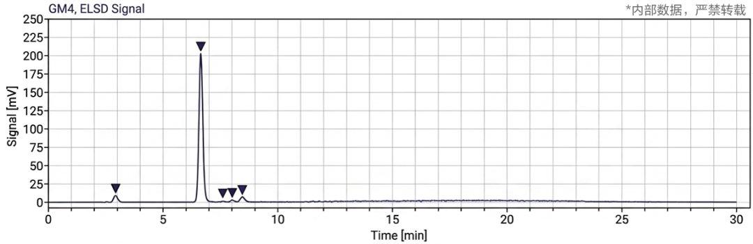 采用天然动物脑组织提取结合化学酶法合成工艺,抗原纯度≥95%。以制备难度极高的GM4为例,主峰面积占比达97.89%,背景干净、干扰极少,从源头保障检测的特异性。