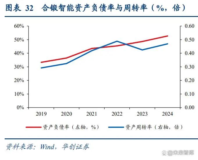 公司盈利能力承压,资产周转率企稳回升。 2024 年,公司实现毛利率 24.7%,同比下降 6.2pts;实现净利率-4.3%,同比下降 5.2pts, 公司盈利水平承压下行。2024 年,公司实现资产负债率 52.7%,同比提升 4.1pts;实现资 产周转率 0.47,同比增长 10.5%,资产周转率有所提升。