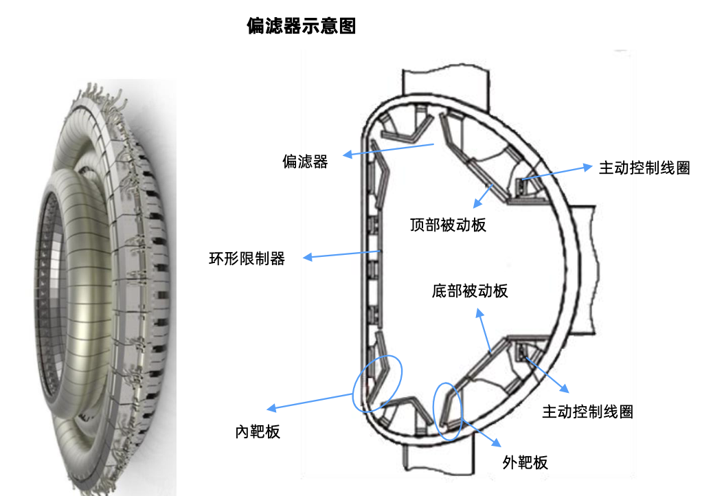 偏滤器通常位于真空室底部或侧壁,核心功能为减少杂质对核心等离子体的污染,占托马克装置总成本的10%-15%。