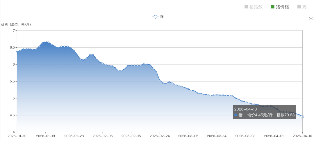 2026年一季度,国内生猪市场走出极端背离行情。据农业农村部畜牧兽医局、卓创资讯监测数据,一季度全国活猪平均价格11.82元/公斤,较去年同期下跌24.6%,3月最低价跌至9.68元/公斤,同比跌幅超30%,猪粮比持续跌破5:1的一级预警线,全行业进入深度亏损区间。