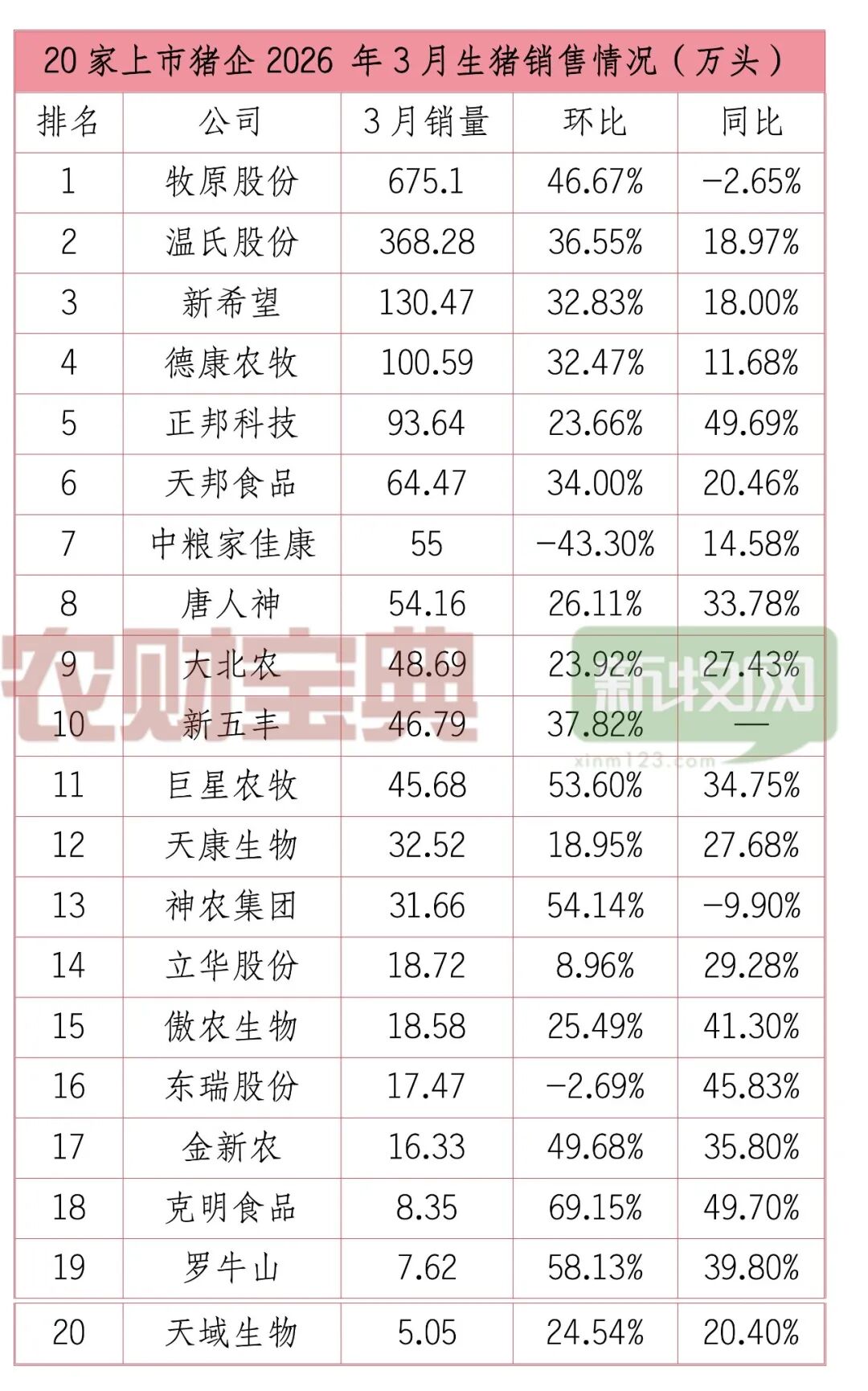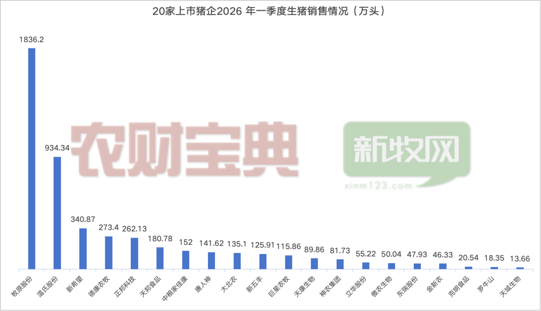 与此形成强烈反差的是,农财宝典新牧网记者统计的20家上市猪企披露的一季度销售数据显示,超八成企业出栏量同比增长,3月猪价谷底期更是集体放量,呈现猪价越跌、出栏越多的反向运行特征,供需错配持续加剧,行业周期磨底压力进一步放大。