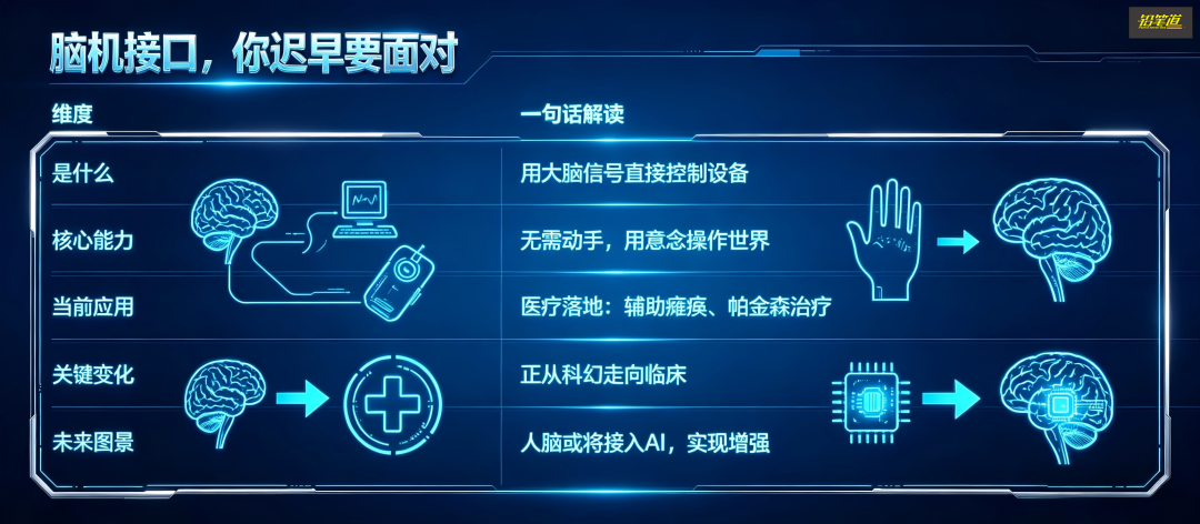 另一个是技术验证。像马斯克的Neuralink,在人体实验上已经证明了脑机接口在运动控制上可以相对长期、安全地运行。这件事非常重要,它让整个行业从“可能性”变成了“确定性”。