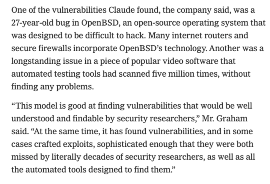 如果一个模型能自主发现所有漏洞,那么我们过去赖以生存的数字文明(网购、转账、社交)都将面临着信誉危机!