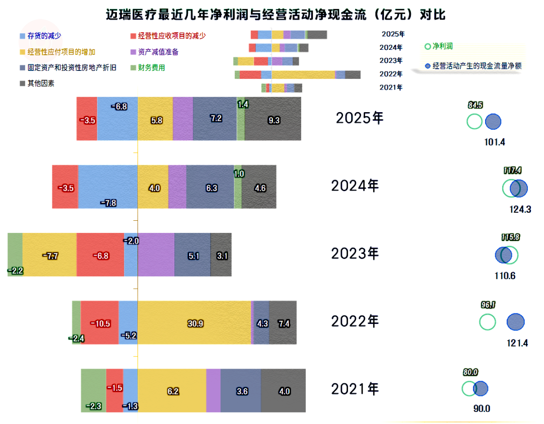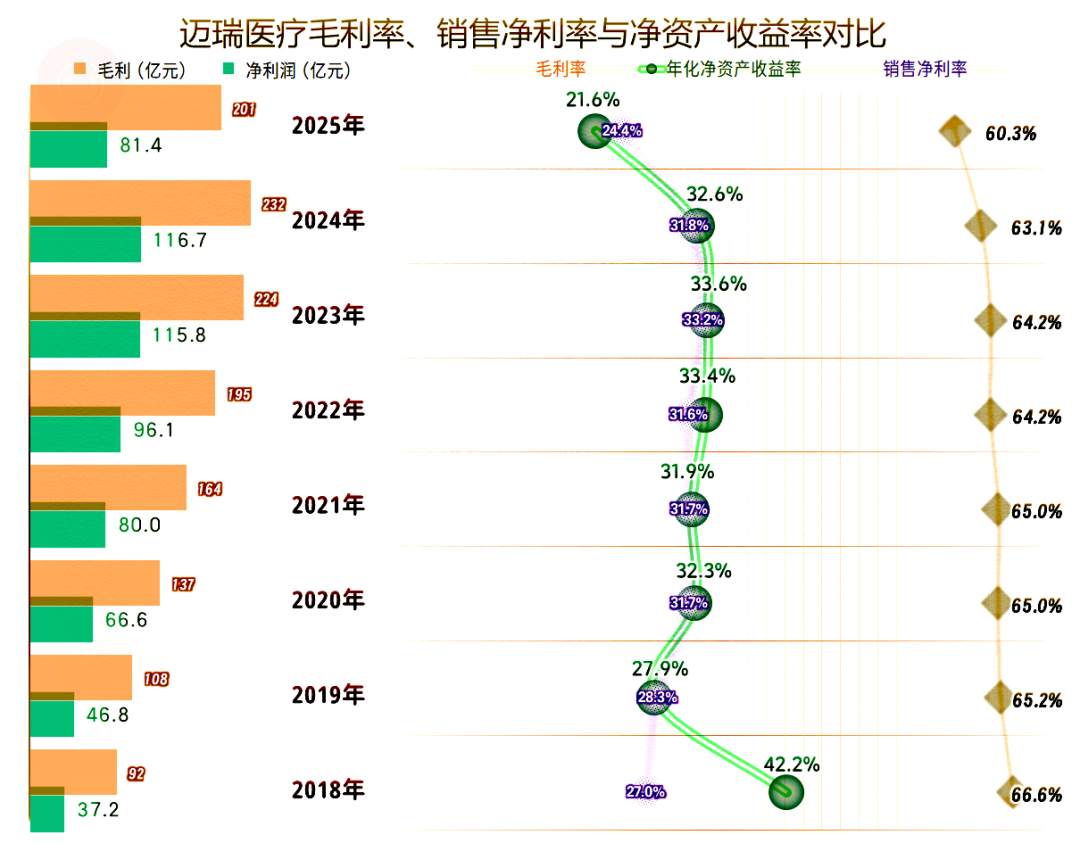 迈瑞医疗并非在疫情下才表现优异,而是疫情前后和疫情之中,销售净利率和净资产收益率都是极为优秀的表现。2025年的两大指标都大幅下滑,但仍然是极为优秀的水平。