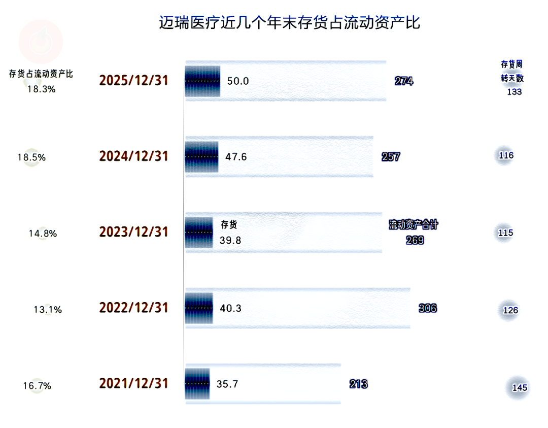 存货的规模总体上是增长的,只有个别年末略有下降。但前几年主要是营收增长带来的占用增加,因为存货的周转天数还在缩短,整体运营效率是在提升的。最近两年这种情况正在发生变化,但形势可控,因为增长后的存货周转天数仍然不算特别高,2025年就还低于2021年。