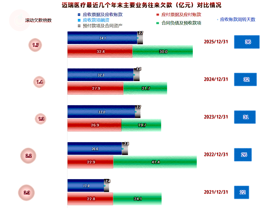 应收项目占用资金的情况主要在2023年末表现得比较明显,最近两个年末实际上增长有限。前面已经说过,2025年末应该有所下降的。增长有限就已经算表现不太好了。与此呼应的还有“应收账款周转天数”的变长,虽然总体仍然很优秀,但这种变长也值得关注。除了信用管理放松的原因之外,当然也受到市场需求放缓的影响。