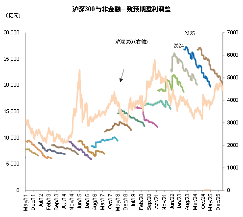 图表:沪深300非金融成份的预测净利润变动