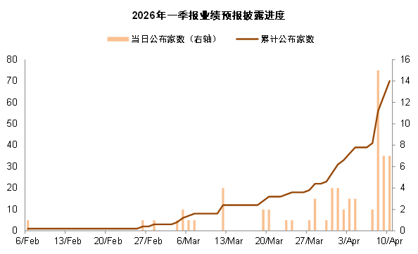 4月即将迎来一季报集中披露期。2月底中东地缘冲突爆发以来局势反复,投资者避险情绪蔓延,全球风险资产表现偏弱。当前虽出现阶段性缓和信号,但未来局势仍然存在较大不确定性,在此背景下上市公司业绩重要性边际提升,业绩出现改善或超预期的行业和个股可能成为投资者关注的主线。截至4月11日,A股已披露一季报预告的公司数量约占1.5%,我们结合中金行业分析员自下而上预测,梳理一季报业绩预览供投资者参考:
