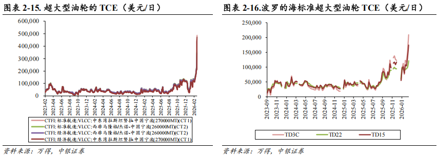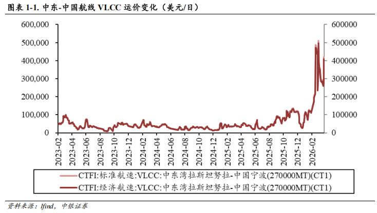 我们认为:霍尔木兹海峡完全关闭标志地缘风险溢价回归,VLCC运价中枢将随海峡通航停滞而抬升;若谈判仍未能取得实质进展,协议破裂风险将急剧上升,霍尔木兹海峡船舶通航数据处于低位,油运市场将继续寻求新型运输格局,运距拉长叠加次优效率,对油运价格形成支撑效应。若谈判取得突破进展,霍尔木兹海峡逐步通航,各国原油补库存需求有望带动油运需求。