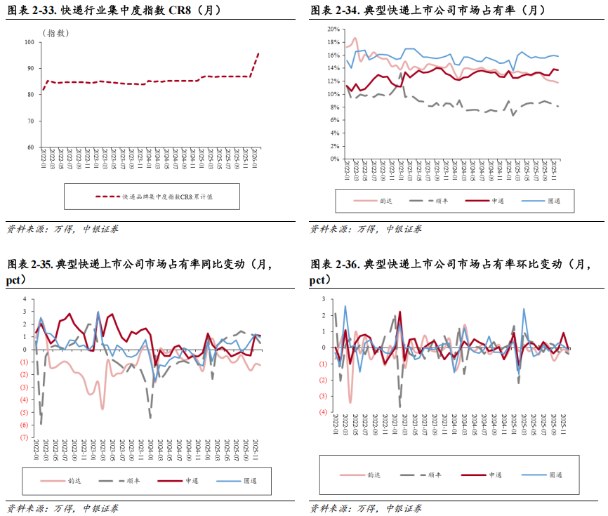 圆通速递:12月圆通的市占率为15.84%,同比 0.98pct,环比-0.14pct。