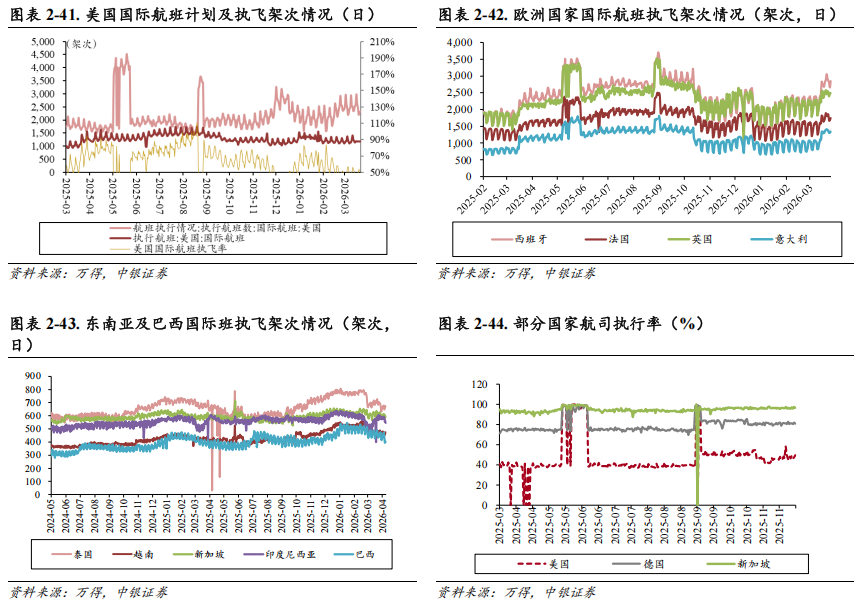 2026年4月第一周国际日均执飞航班1782.71次,环比 1.18%,同比 2.89%。2026年4月4日至2026年4月10日,国内日均执飞航班12331.86架次,环比-5.16%,同比-1.86%;国际日均执飞航班1782.71次,环比 1.18%,同比 2.89%。