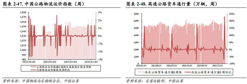 年初至今:2026年初以来,上证综指、沪深300累计涨跌幅分别为 0.44%、 0.14%,交通运输指数-1.14%;交通运输各个子板块来看,铁路公路-4.11%、航空机场-20.78%、航运港口 18.87%、公交-13.84%、物流0%。