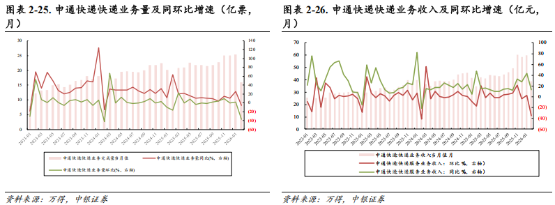 申通快递:2026年2月单票价格2.44元,同比 19.61%( 0.40元),环比 3.83%( 0.09元)。