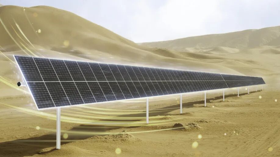 中信博天际Ⅱ跟踪系统耐高温、耐湿热,多点平行驱动设计具备强风稳定性,可高效适配沙漠环境。针对项目现场条件,中信博开展全场地桩基勘测与定制化结构设计,结合地形地质、风场与沙尘特点定制设计;系统全面适配双面组件与自动清洗系统,以定制化解决方案保障项目全生命周期稳定运行。