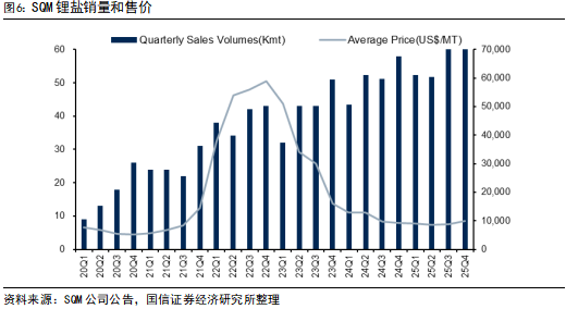 投资端:公司持有SQM 21.90%股权,是其第二大股东。SQM 2025年锂盐销量约23.31万吨,同比增加13.76%。SQM 2025年度营业收入折合人民币325.31亿元,净利润折合人民币41.81亿元。