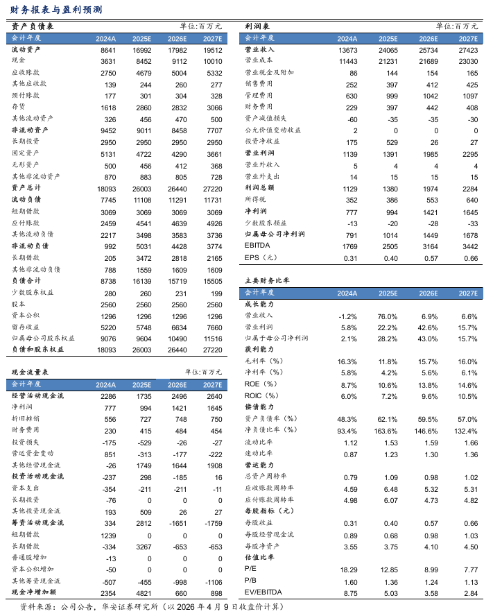 公司发布2025年度业绩预告,预计2025年实现营业总收入240.65亿元,同比增长76.00%;归母净利润10.14亿元,同比增长28.26%;扣非后归母净利润5.13亿元,同比下降32.67%;基本每股收益0.4元,同比增长29.03%。公司营业收入增长主要系公司成功完成对中粮包装的收购,进一步夯实了公司在金属包装这一核心赛道的战略市场地位,并通过业务与产品结构的深度优化,推动综合竞争力实现系统性增强,收购并表后业务规模扩大,营业收入与资产规模均实现显著增长。公司扣非归母净利润下降主要受以下因素叠加影响:1)铝材采购成本因市场价格维持相对高位而承压,终端产品售价则受市场影响仍处低位区间,产品价格提高的效果具有时滞效应,导致产品毛利率和利润同比收窄;2)重大资产收购项目推进过程中,相关中介服务费用及并购贷款产生的利息支出同比大幅增加;3)公司根据具体经营情况,拟按照谨慎性原则,对部分存货、固定资产等计提减值准备。公司发布2026年第一季度业绩预告,预计2026Q1实现归母净利润4.5-5.8亿元,同比下降13% - 32%;实现扣非归母净利润3.0-3.4亿元,同比增长58% - 80%。公司归母净利润同比下降主要系上年同期完成对中粮包装的收购,确认非经常性投资收益4.6亿元,导致上年同期基数较高。扣非归母净利润同比增长超50%,主要系公司合并原中粮包装后,业务规模扩大,通过资源整合与管理提效驱动核心业务盈利能力提升;同时,体育业务板块球员转会收入增加。公司成功并购中粮包装,二片罐的市场占有率将达到37%,居二片罐市场份额第一。2022年公司二片罐业务毛利率为2.55%,明显低于同行业核心竞争对手(2024年宝钢包装二片罐业务毛利率为8.51%,2024年波尔/皇冠控股整体毛利率分别为20.70%/17.72%),在规模扩张及整合增效下,公司二片罐业务盈利能力有望提升,贡献业绩弹性。公司作为金属包装行业领军企业,三片罐持续优化品类及拓展客户结构效果显著,营收稳健增长;二片罐业务成功并购中粮包装,市场份额大幅提升,议价能力提升下盈利改善弹性大。基于业绩预告,我们预计公司2025-2027年营收分别为240.65/257.34/274.23亿元(前值为238.6/254.97/267.65亿元),分别同比增长76%/6.9%/6.6%;归母净利润分别为10.14/14.49/16.78亿元(前值为12.34/13.99/15.33),分别同比增长28.2%/43%/15.7%;EPS分别为0.4/0.57/0.66元,对应PE分别为12.85/8.99/7.77倍。维持“买入”评级。